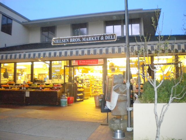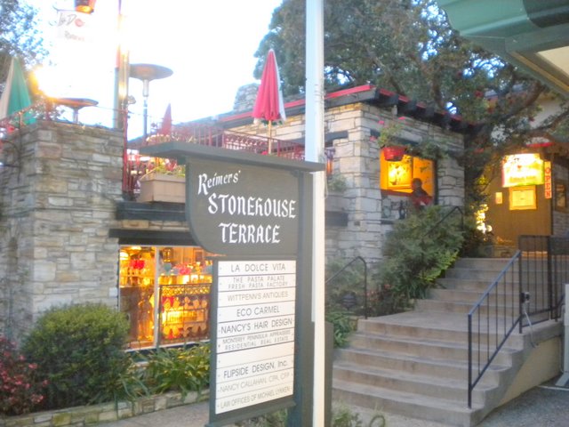 For one year between the time we sold a house in Carmel Valley, until we purchased our current Castenada Lane, we rented one of those quasi-European, charming rentals nestled between businesses in quaint buildings of downtown Carmel. This was in the Stonehouse Terrace Court behind the restaurant, La Dolce Vita and surrounded by this and that, and up the stairs and above the Pasta shop, where most of the fresh pasta used by Carmel restaurants began. The apartment has a downstairs outer door, and often I would discover tourists on our inner landing, still exploring nooks and crannies and not realizing they were nearly standing in our living room. It was a fun year for the most part and a different experience living right among the Newly Wed and Nearly Dead. But convenient. Kitty-corner across the street from the complex is the long established Mom and Pop grocery store, Nielsen’s, that Carmelites all love, with it’s pre-packaged home-style dinners you can pick up and its home delivery and excellent wine selections and primo meat counter.