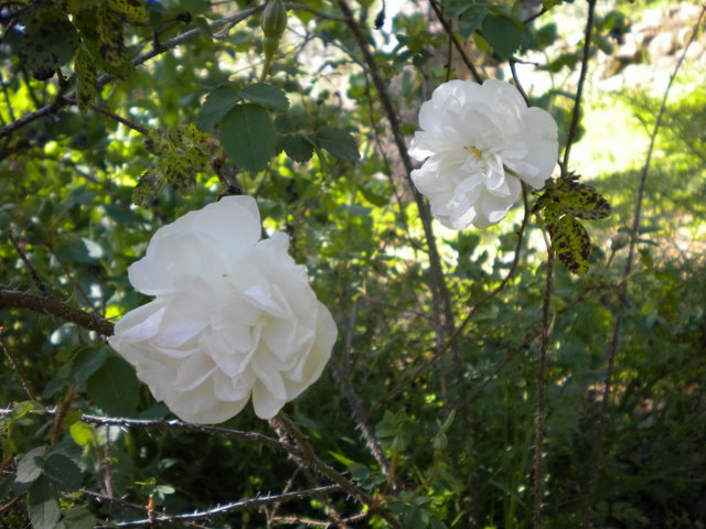 The Quatre Saisons is the first bush rose to bloom in my garden this year. An ancient rose which came from the Middle East it is thought to be the same rose mentioned by Herodotus in the 5th Century B.C., growing in the gardens of Midas and more sweetly scented than all other roses.