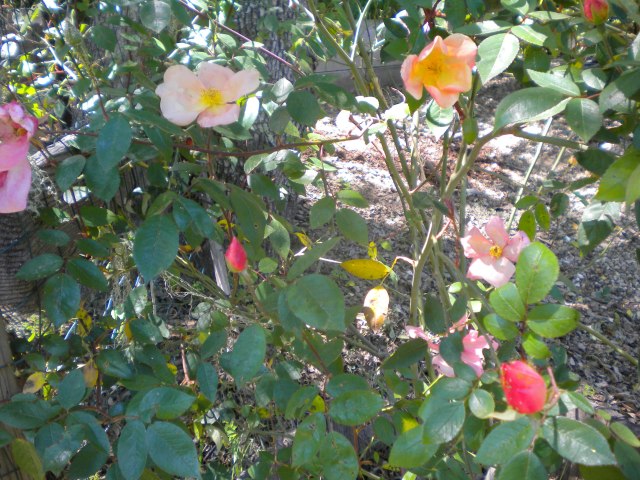 And the Mutabilis (“Tipo Ideale”, or R. turkistanica) – another with mysterious origins, but a china rose which produces single blowsy, butterfly shaped flowers of honey-yellow, orange and red – all together!