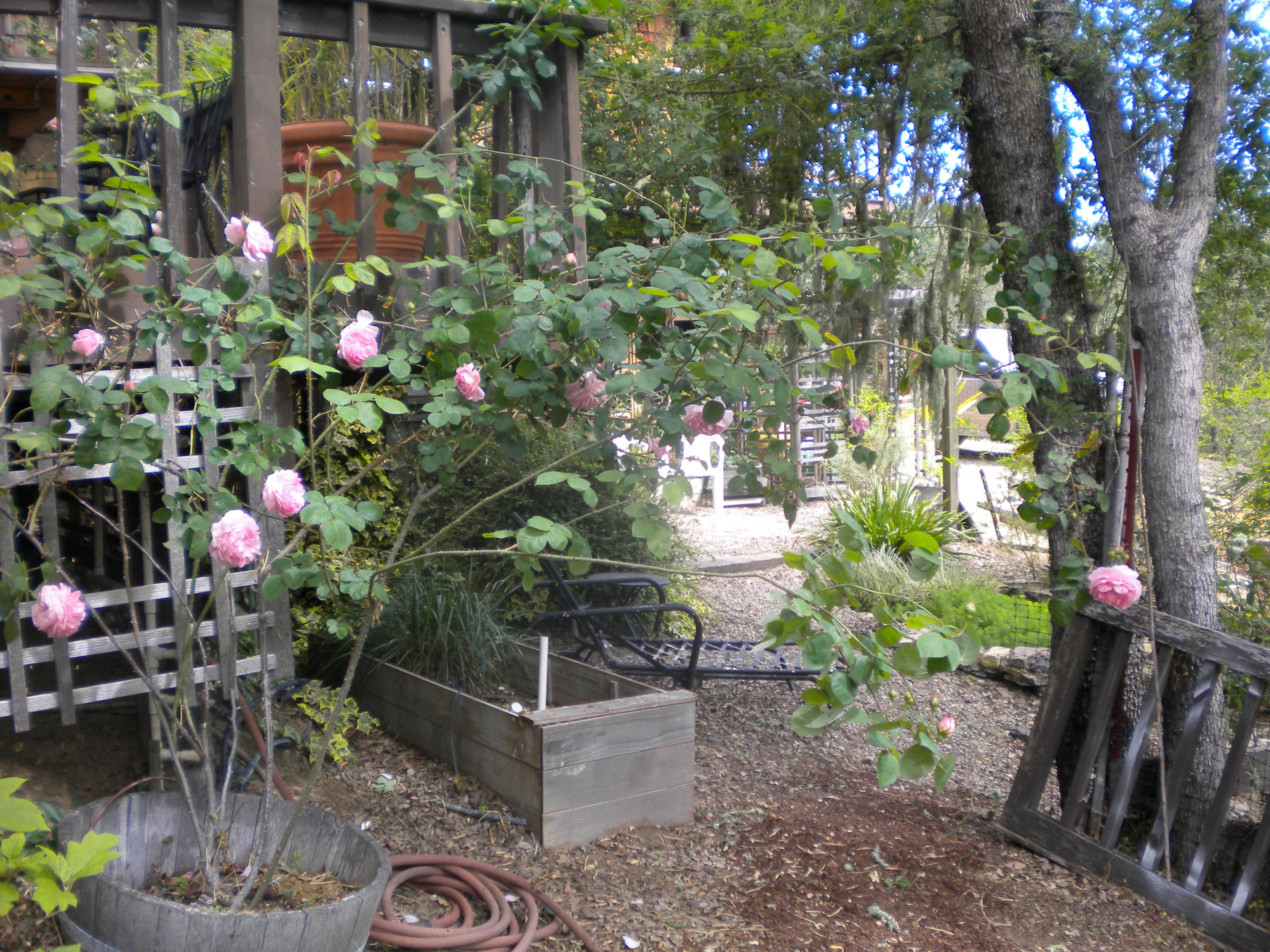 Constance Spry was the first of the David Austin English roses and she arches across the path in the lower garden across from the frog pond.