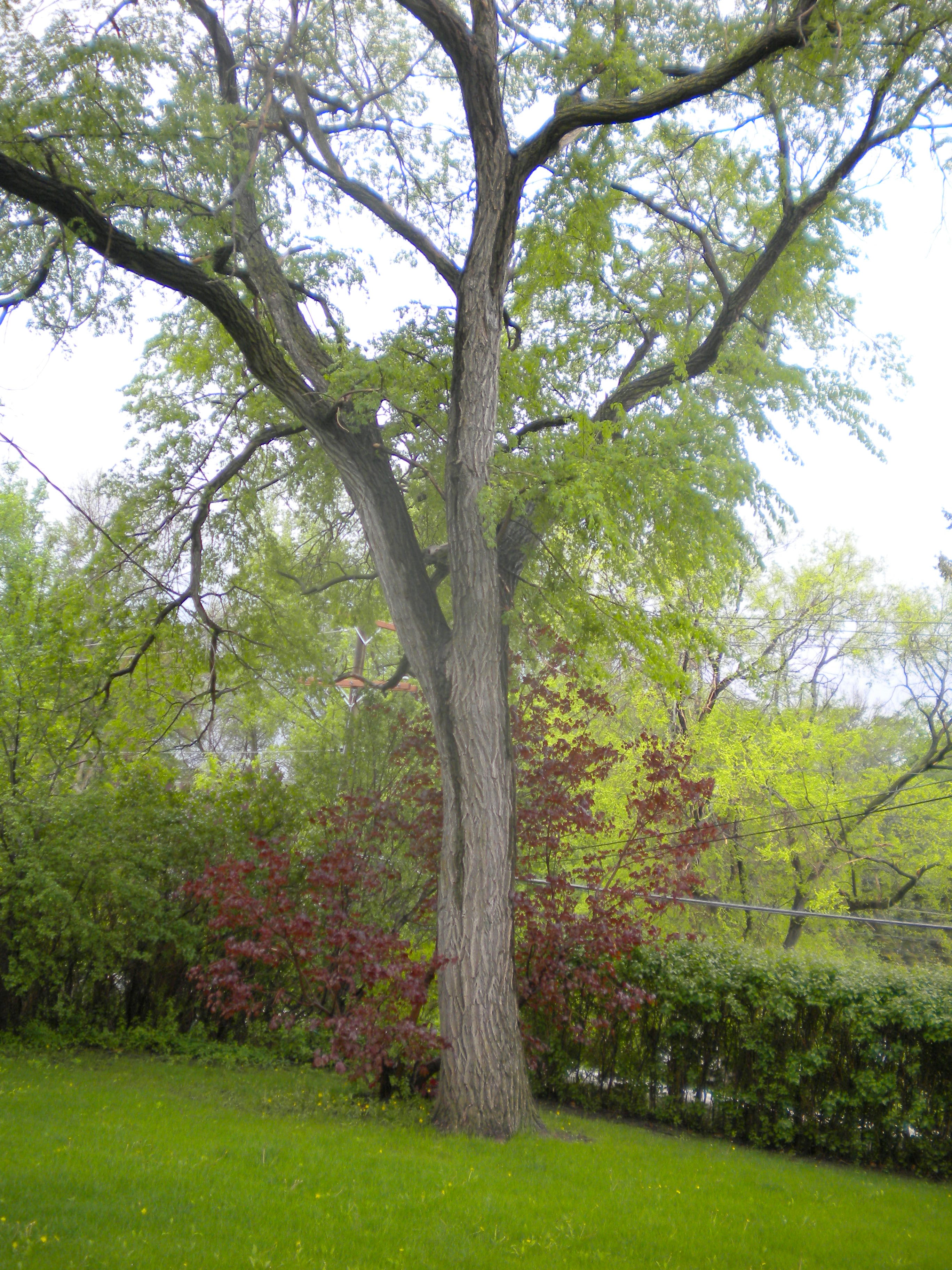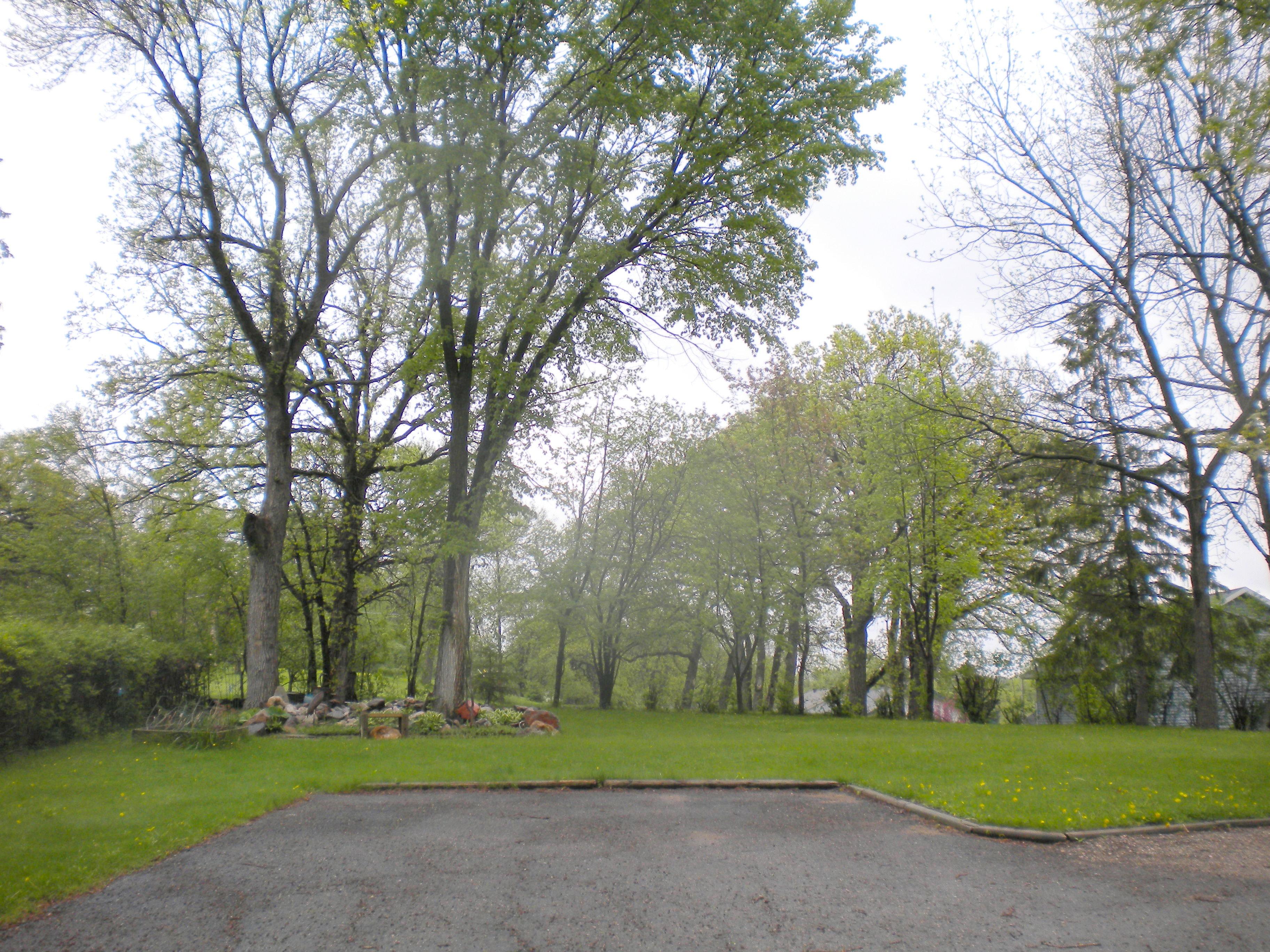 I’m thinking that the scrubs to the left, alongside the house are bush Dogwood, but who can identify the intertwined “reds” to the right?