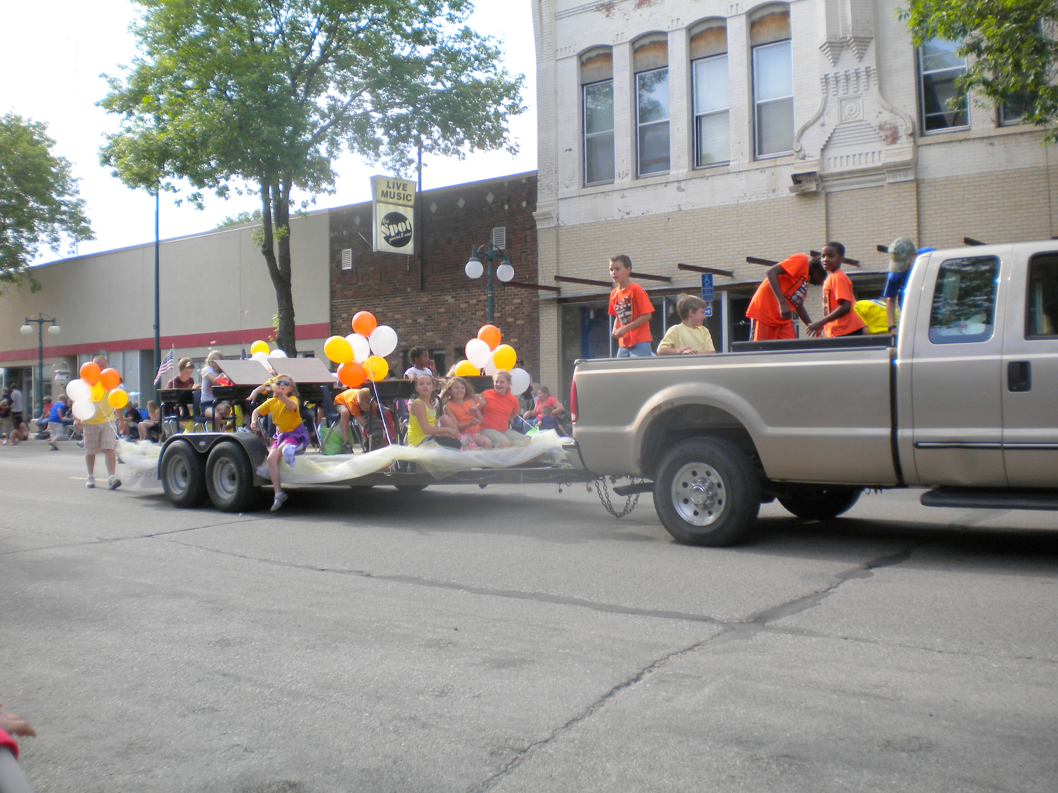 But we did get in on the Main Event – THE PARADE. Downtown was rife with families thrilled to spend a couple of hours cheering on every manner of entrant – primarily cars and trucks simply riding by advertising their local business. The highlight of the entire parade, however, centered around the used grocery bags wielded by every child who rushed into the street to grab at candy flung from every vehicle and passing parader. In other words – Halloween to the maximum nth degree. It was a long parade.