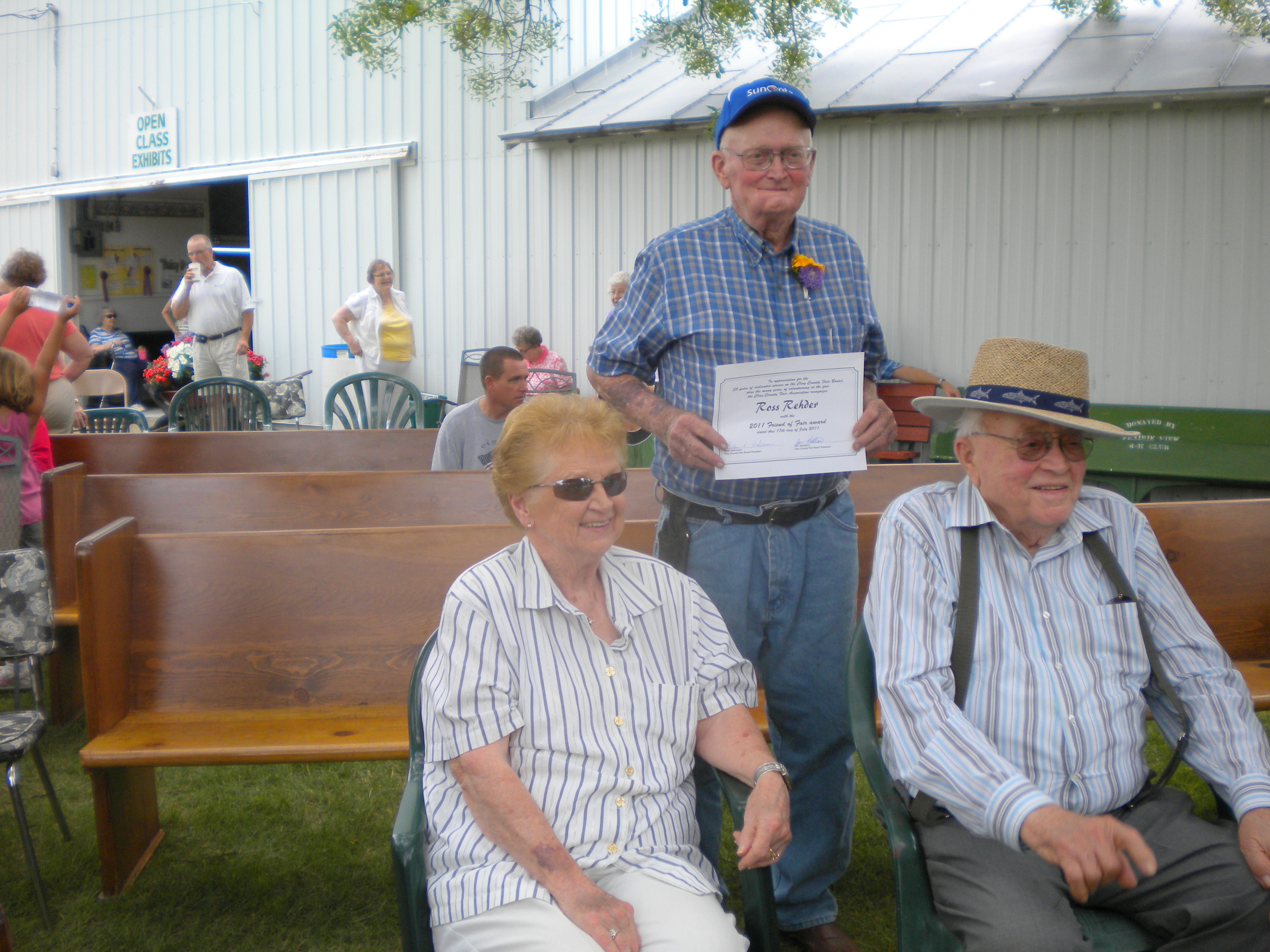 Yet if I had to put it to the test, bring the whole concept into my personal reason for this drastic uprooting move, I would name it Family. That’s the type of community I longed for all my life out there growing up on the coast. And that was a number one reason in this reverse return. So – it was a perfect ending to the day to go to the Clay County Fair where my cousin Ross (on my father’s side) was awarded the Friend of the Fair Award for 2011 and my mother’s cousin Lynn was given a posthumous award and inducted into the Hall of Honor. Pardon me if I indulge in a bit of genealogical pride – BOTH sides represented with the highest honors!