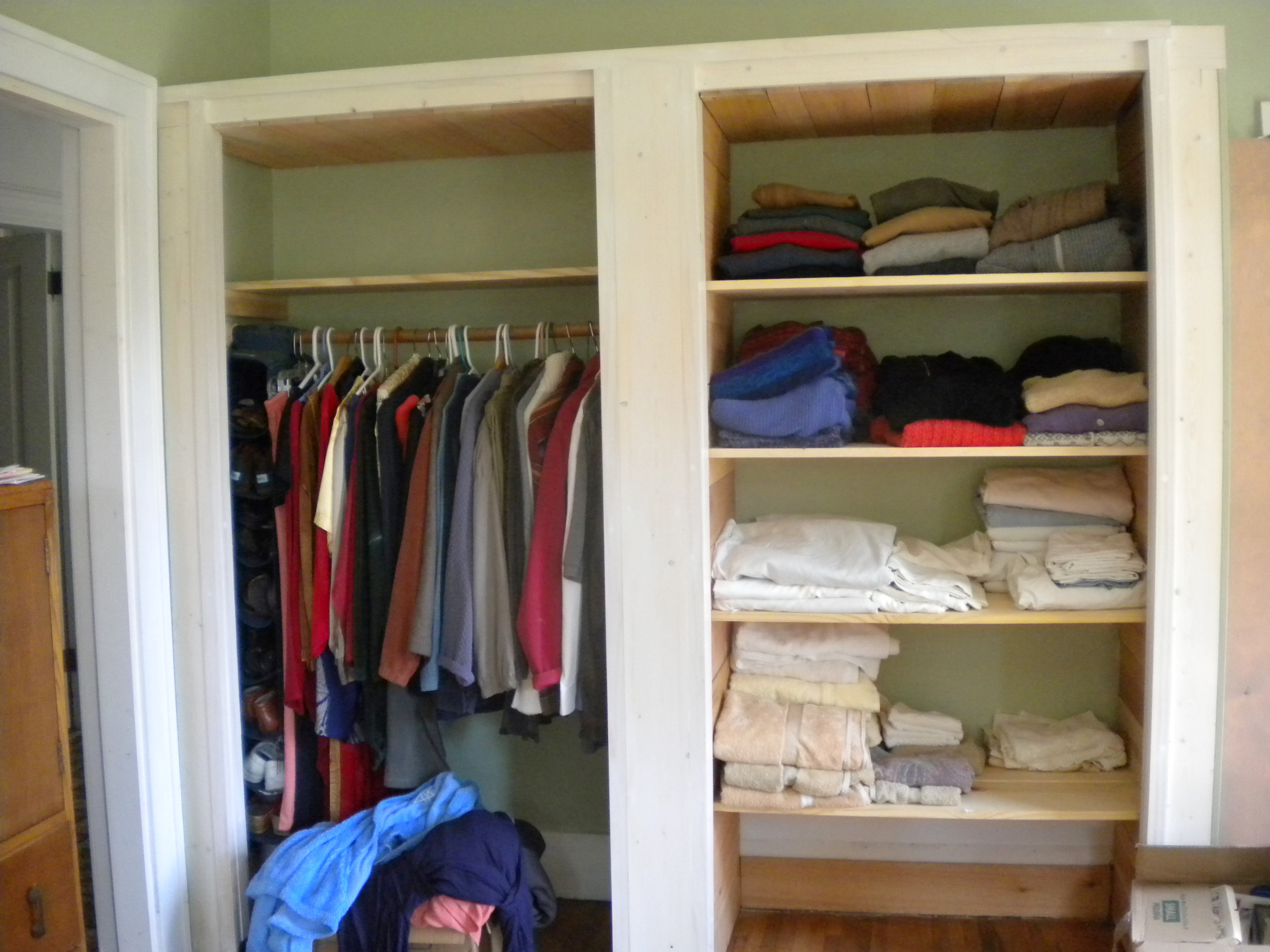 So – T.M. and I recently had a difference of opinion on the meaning of the word “done”. When we initially made an agreement that concerned how necessary it was to complete just one area in this remodeling/reconstruction mess, we evidently failed to elaborate and confirm to one another our individual understanding of the term, “done”. That is why the Grumpy Room has now become the Interminable Room. Yes, it is majorly cleaned up, has a new hanging and linen closet (minus the doors) and one bookcase (still needs two) and a computer desk (very happy about that) but still lacks other shelving, rug, drawing/office table, cozy chairs and lamps and pictures on the wall.