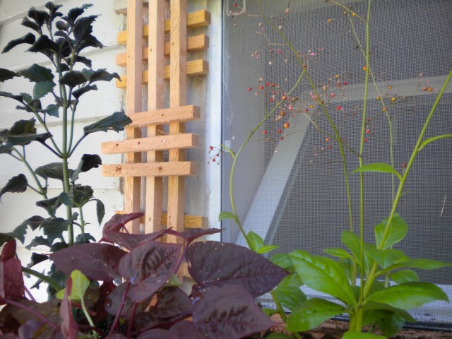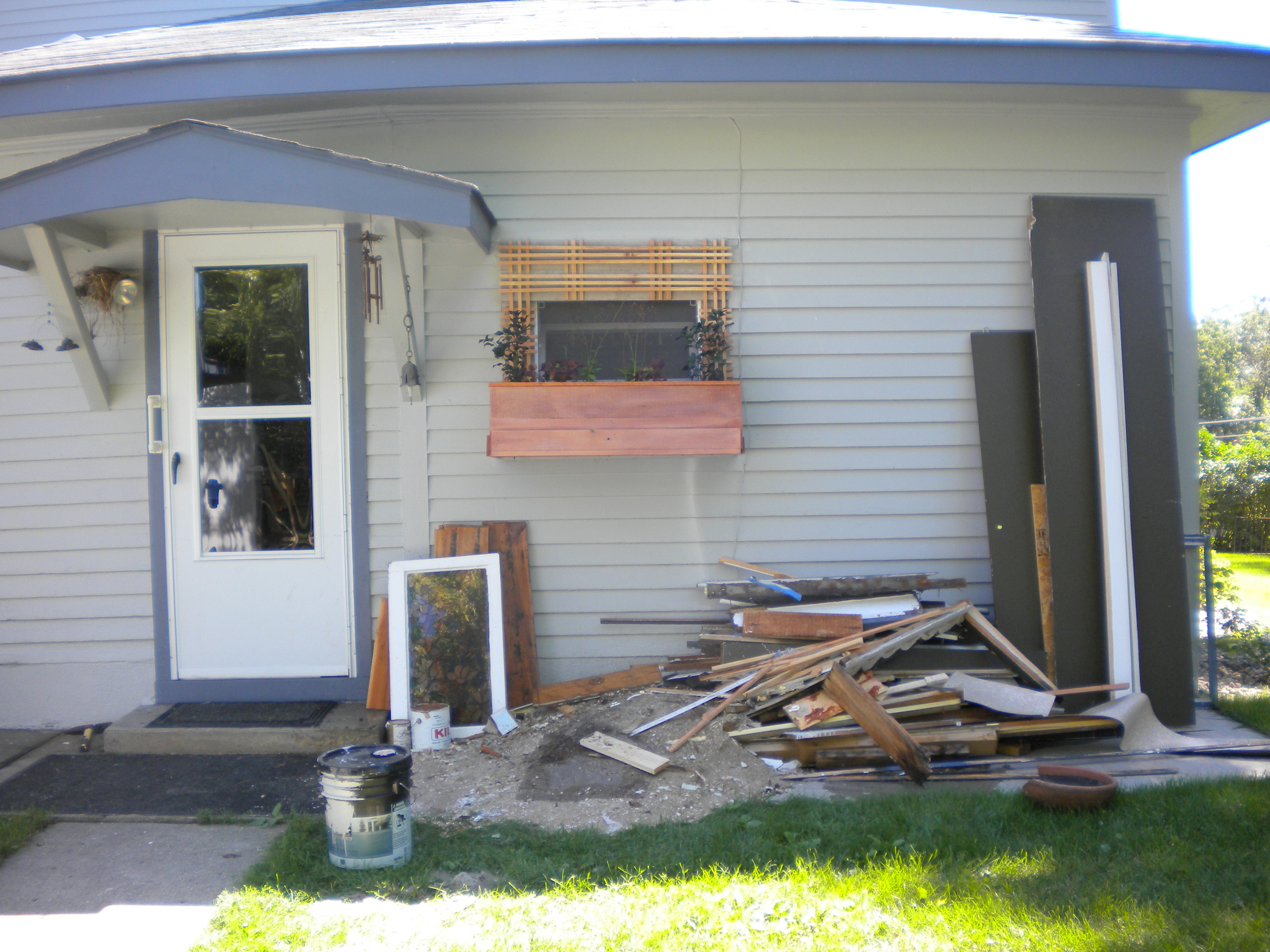 Our friend Trudy liked to say – “If you can’t fix it, feature it!” And that is how my latest gardening adventure came about. Because of a hole in the wall. It all began when T.M. decided to replace the small downstairs bedroom window with a double pane, never imagining that 120 year old plaster could be so unforgiving. And so he cleverly decided to build a planter box around the new window, featuring by concealing whatever it was he was unable to fix. If you follow.