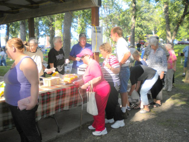 Each week the food is provided by a local café or organization and it was definitely a testament to the popularity of the Underwood Elks who must have barbecued hundreds, maybe thousands of pork chops. All I know is the food line extended far into the trees and never diminished for one solid hour.