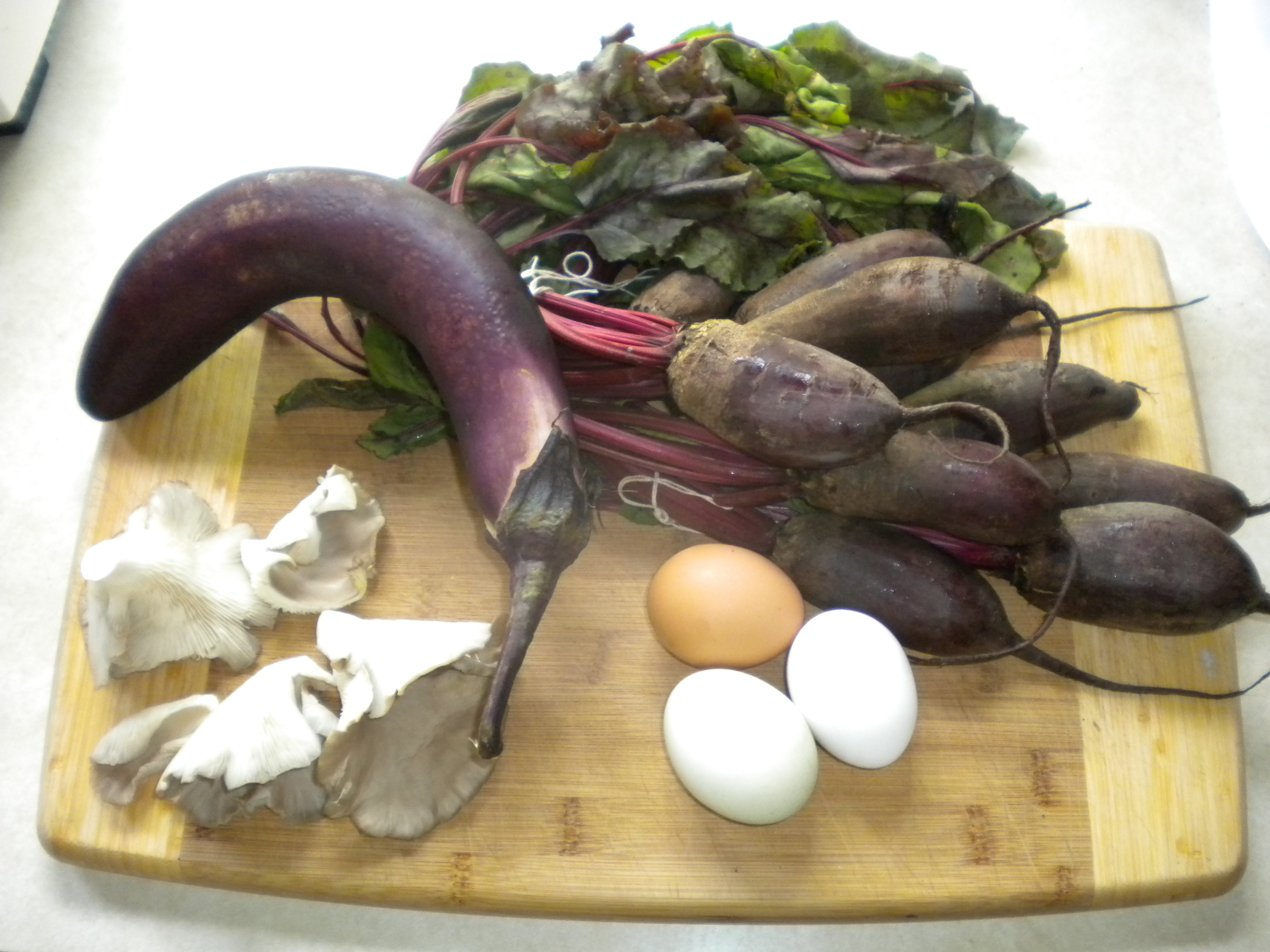 He and his wife, Gretchen moved back to her four generations family farm and have converted it to what’s known as sustainable agriculture, which means “farming in a manner that nourishes the land, using natural, renewable resources and seasonal production methods”. Right up my alley – I say hurrah for that. We have even been able to purchase “pastured” no-antibiotic chickens and first class eggs on occasion, but Pat always has tempting vegetables of outstanding quality.
