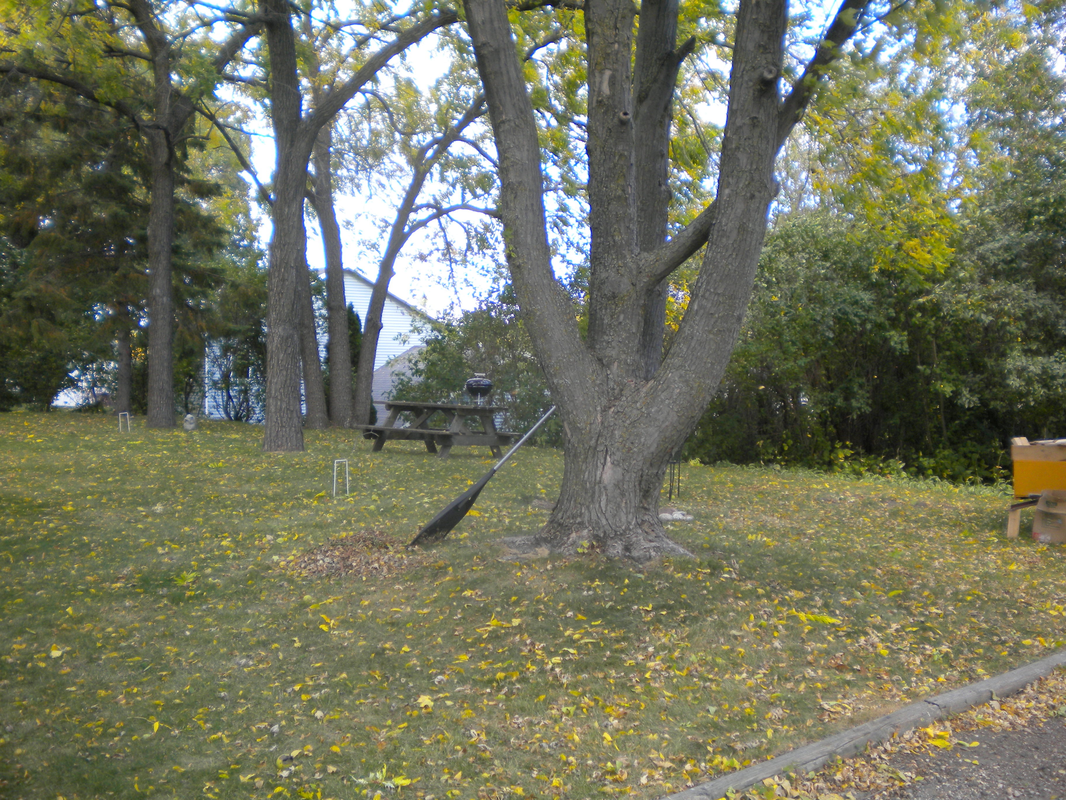 Today is my first taste of a Minnesotan Fall. And it looks like a lot of work to me. In the summer I snitched fallen branches from other people’s yards in order to provide the necessary leaves (ratio: 4 to one to the kitchen scraps) for my composter. I guess the lesson here is the old standby – Watch out what you wish for!