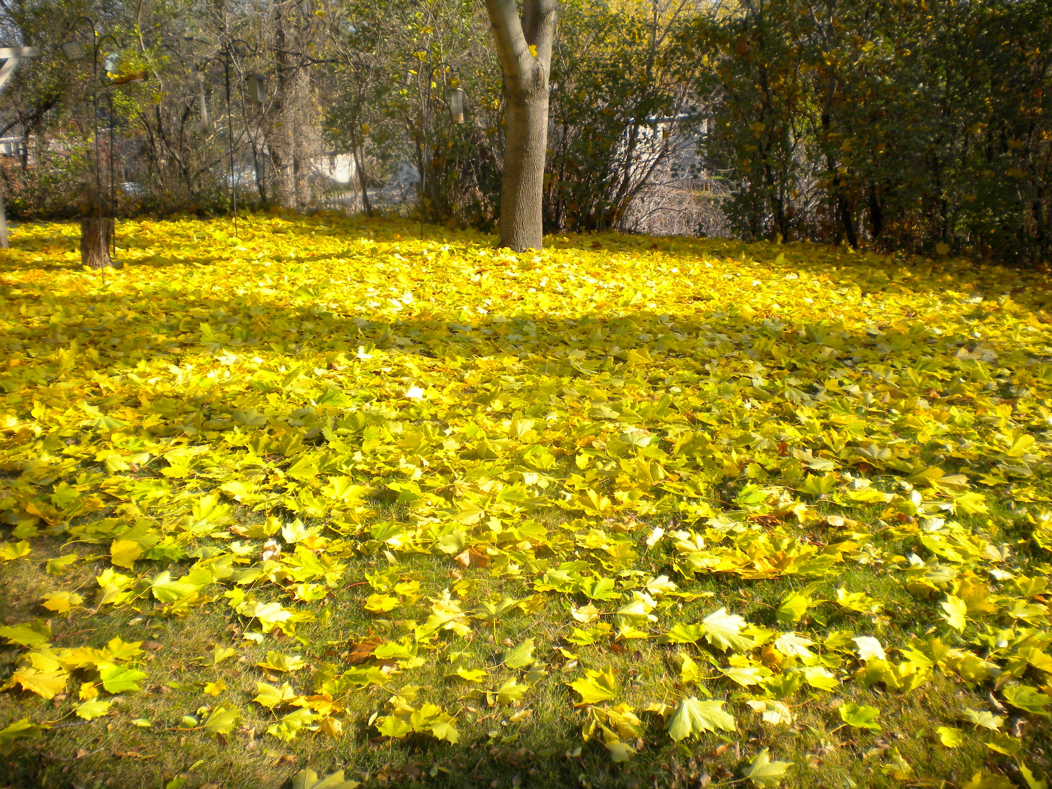 But when I went out this morning  to stock the bird feeders for the weekend, here is what I saw – a golden carpet.  We wouldn’t have seen THAT in California.