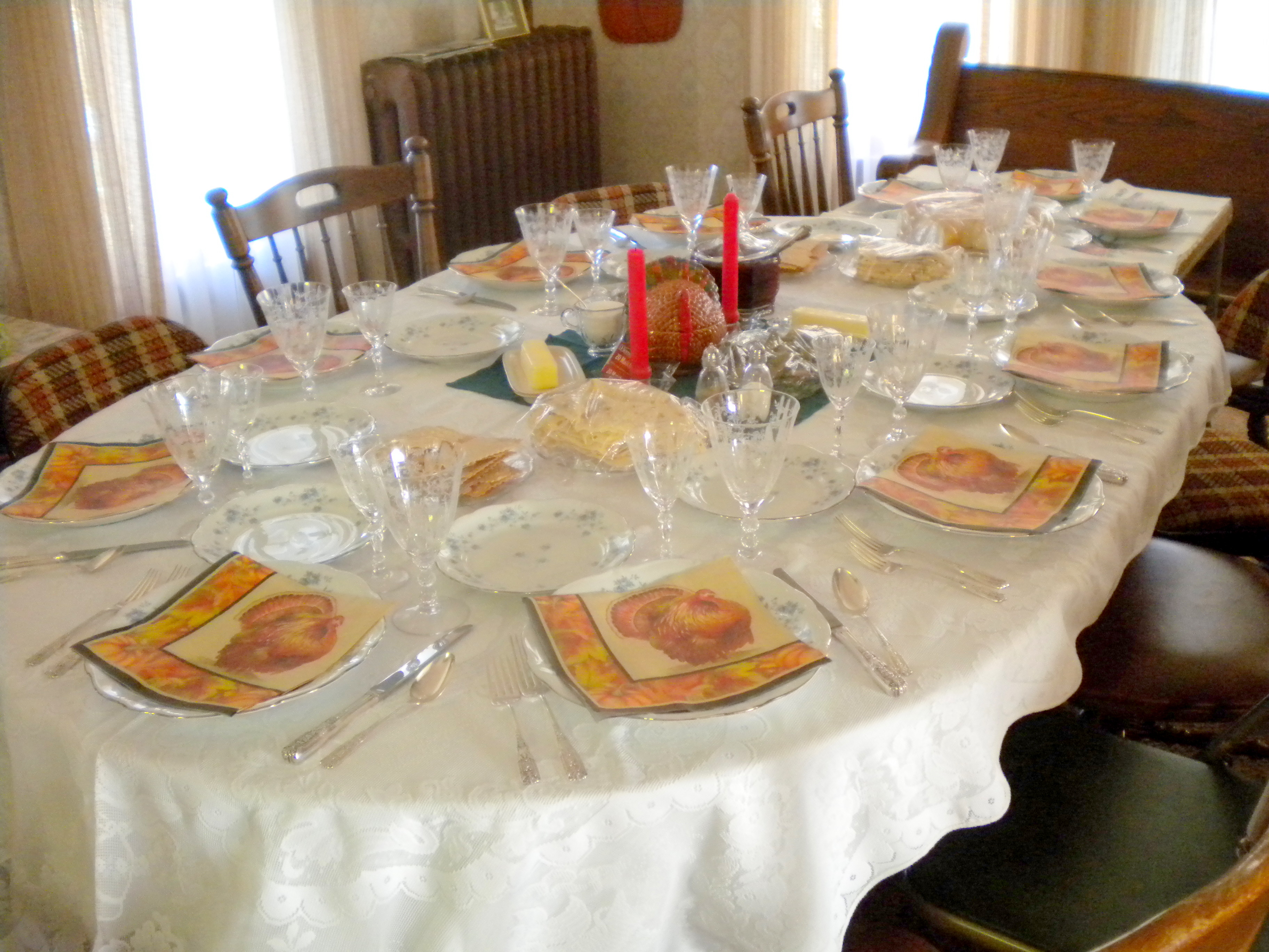 Life in the northern prairie is good. We spent Thanksgiving with family in my grandparent’s house in Hickson, North Dakota. It was traditional in most respects (green bean casserole and marsh-mellowed yams notwithstanding) with the added Norwegian touch of homemade lefsa and flatbread, reverentially set midst aunt Lil’s best china and stemware, shadowed by waftings of game scores coming from the living room and kid’s playing along to a twister movie in the den, and celebrated with more food than I would have thought possible to imbibe at one sitting. Life is good.