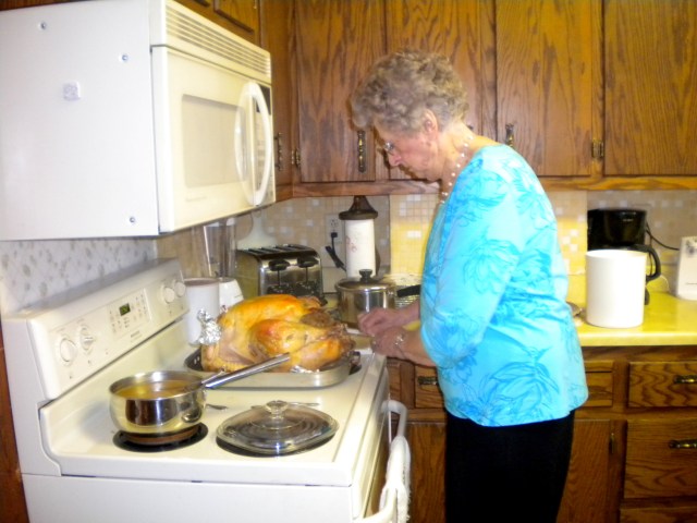 For once T.M. ceded his favored position as head turkey baker to aunt Lil, who is the commander and chief in her own kitchen, and I gave up my position as sous-chef to my cousin Debbie who, after all, IS the most “beautiful woman” when she isn’t being La Ditzy the clown.