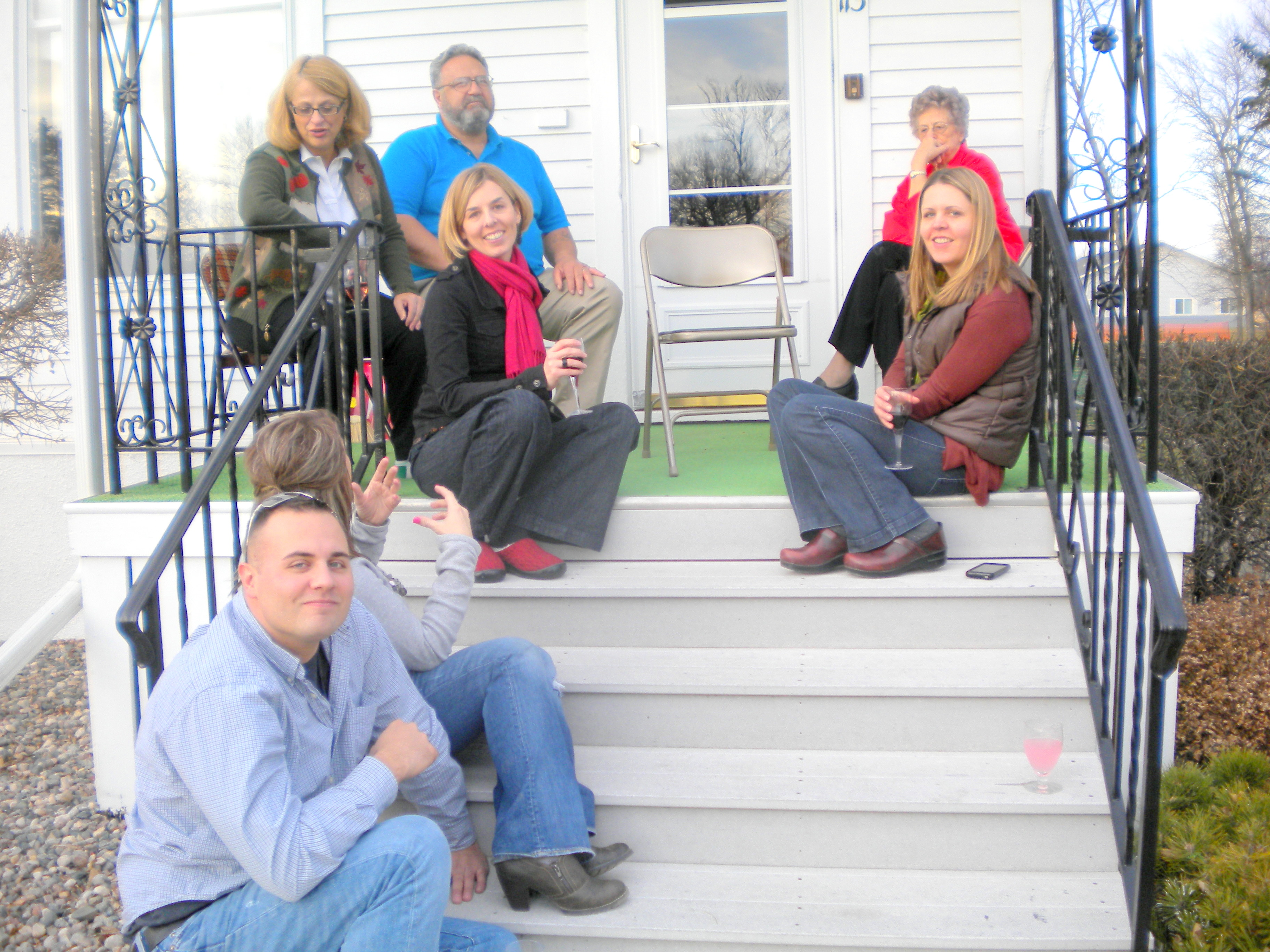 And while resting up before the pie course, we did something hardly ever done in these northern parts at Thanksgiving – we sat outside on the porch! (The ones not napping.)