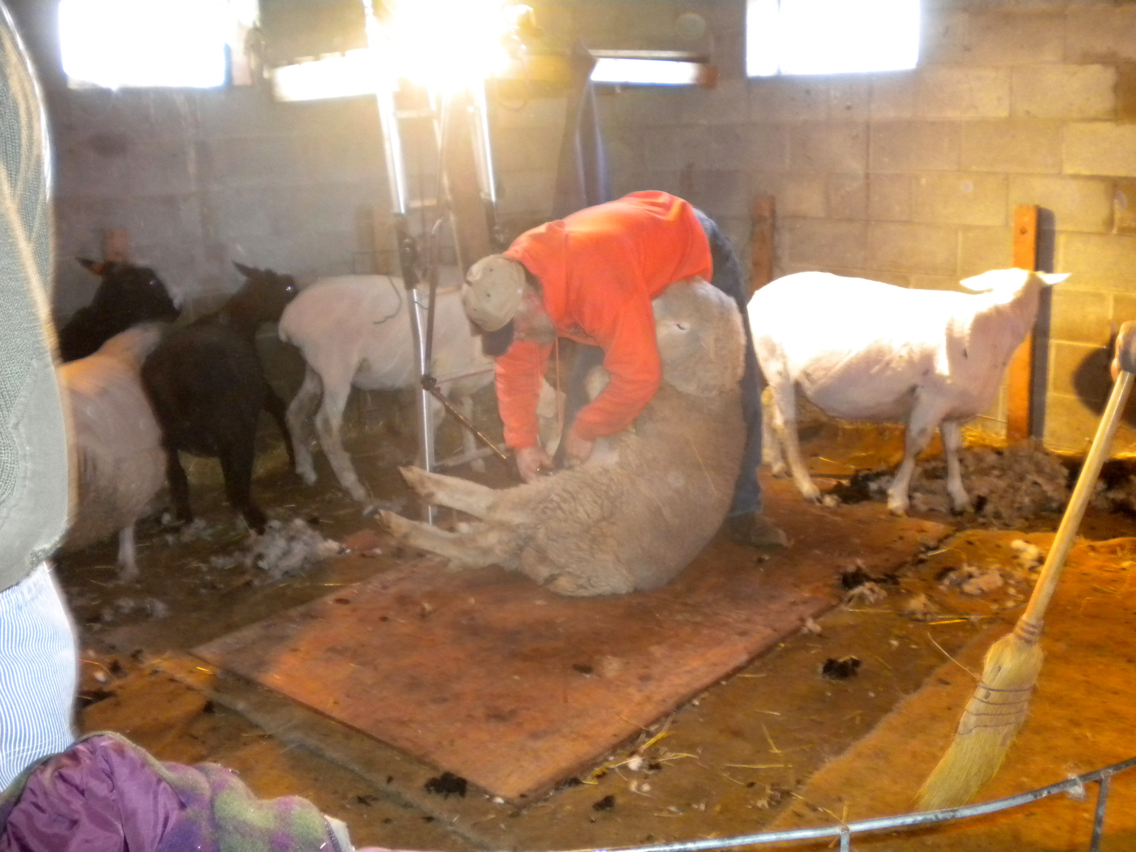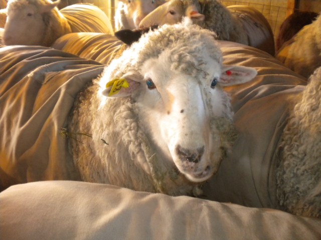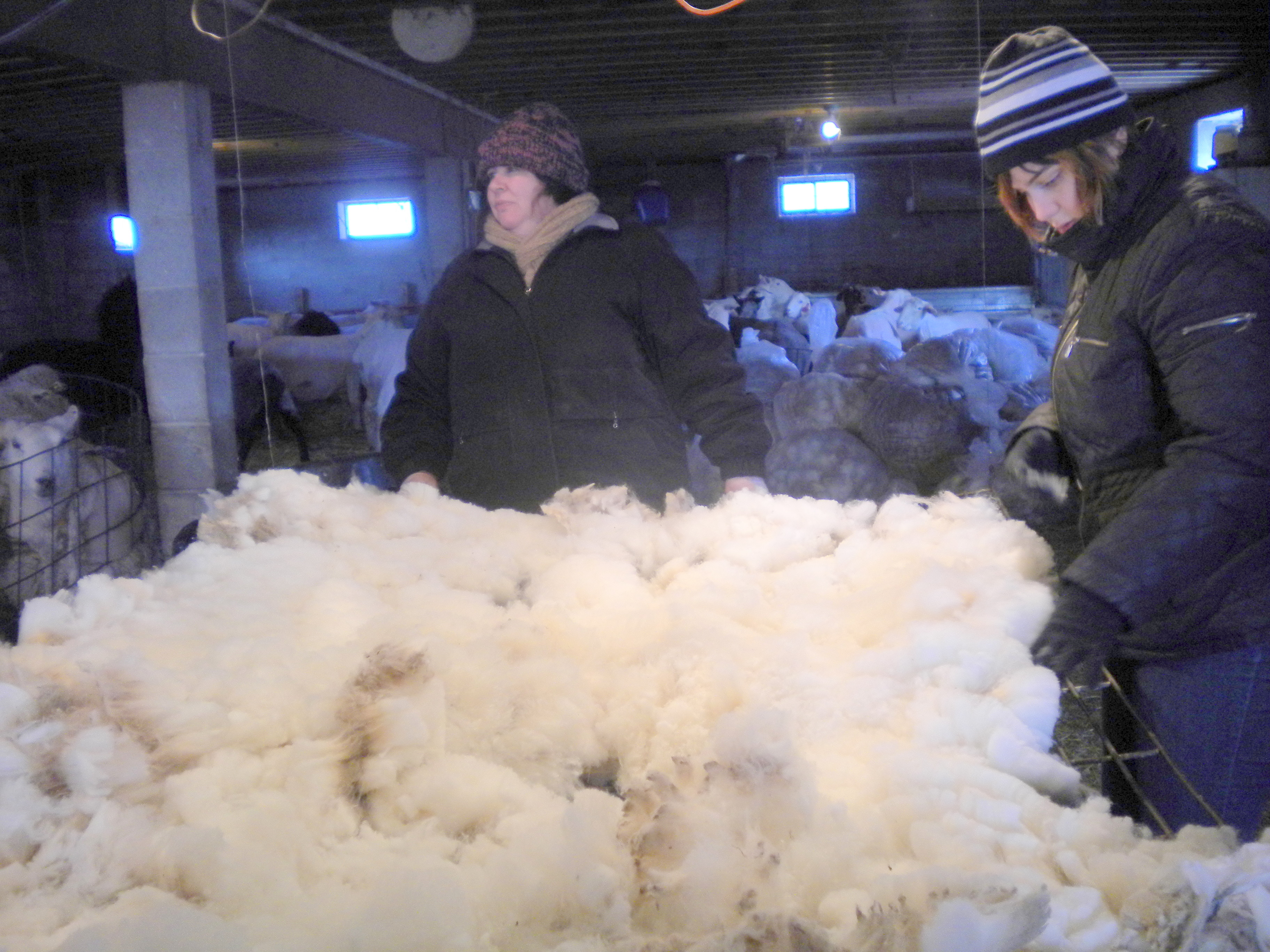 Each shear goes onto the metal skirting table and I stand about with other helpers, picking, picking, learning what to discard, what to celebrate. We pick off the little “second” clumps, the yellow urine stains, the pieces of straw, alfalfa and poop.  I’m introduced to “luster” and “crimp”.
