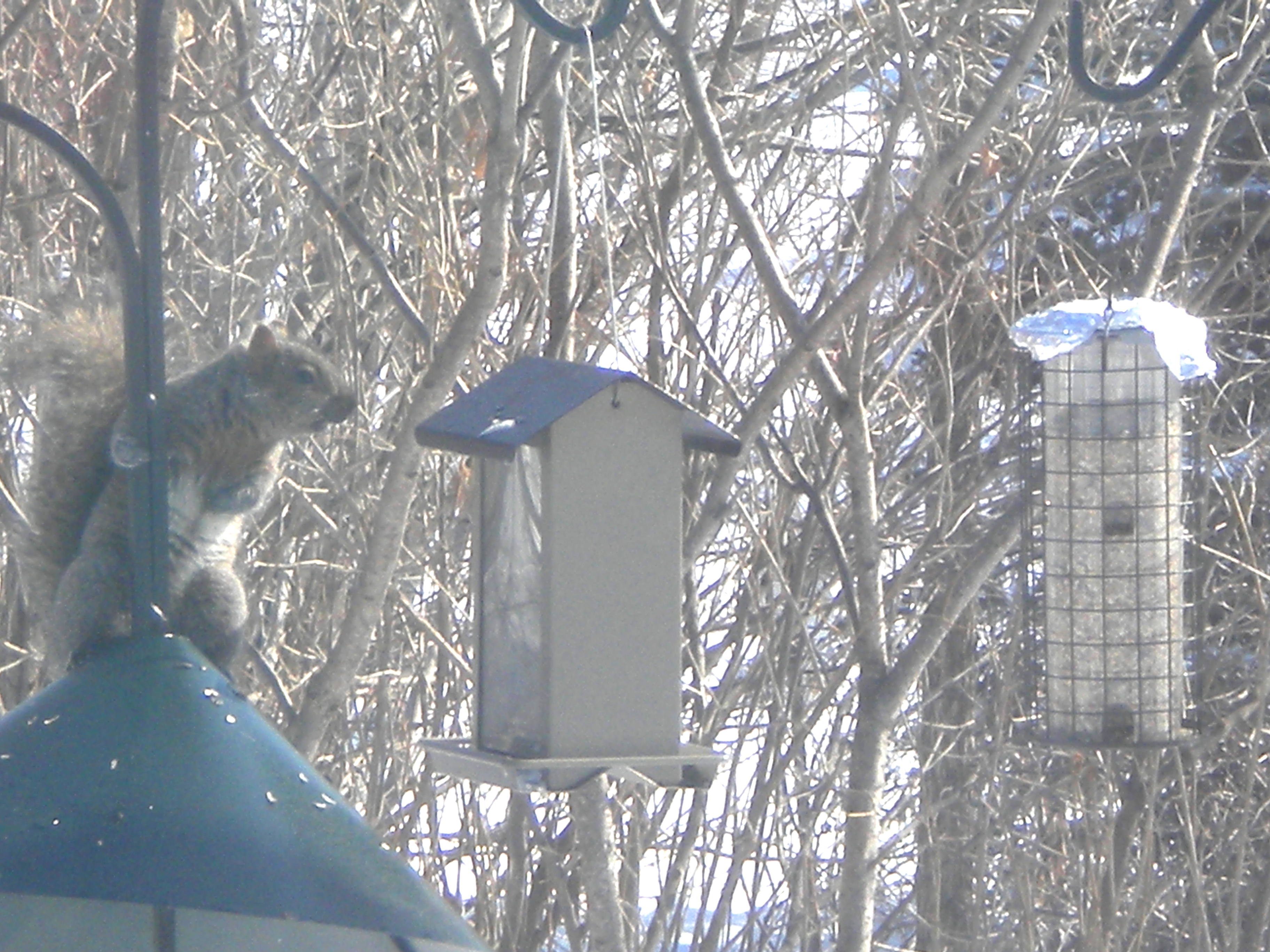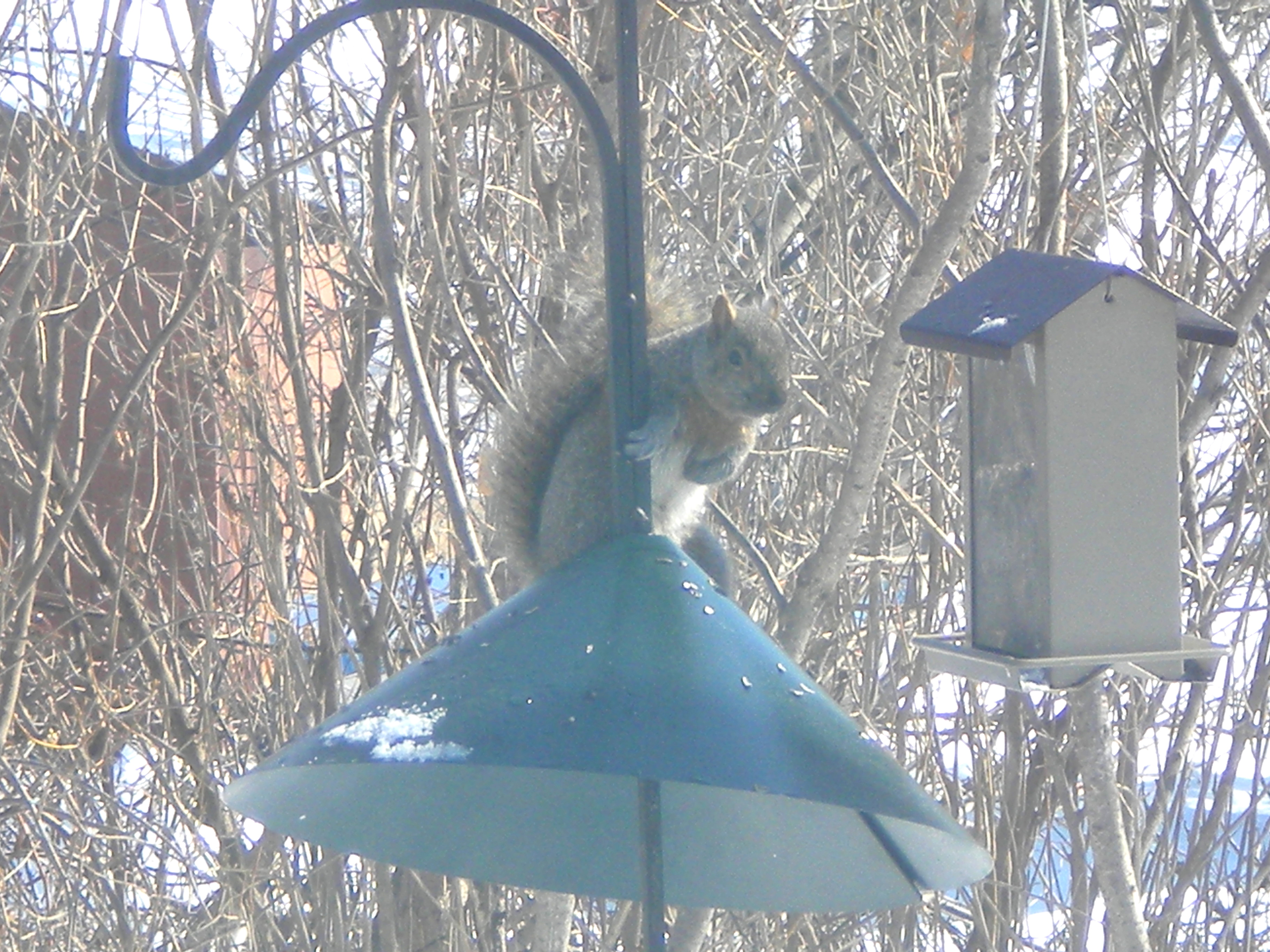When we first came to Mt. Faith as veterans of bushy tailed rodent hostility, we viewed the northern cousins as inferior combatants. When they shinnied up the poles, I greased them with Crisco. (Caveat: I thought I was so clever, but a Star Tribune birder advised against this practice which might lead to greased feathers!) If I said “Boo”, they ran for the trees. I read in my bird books that they evidently suffered a high mortality rate because of the harsh cold conditions ahead. So I waited with a ghoulish sort of anticipation, knowing that it might be only a matter of time.