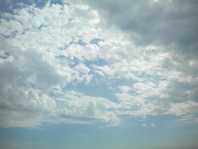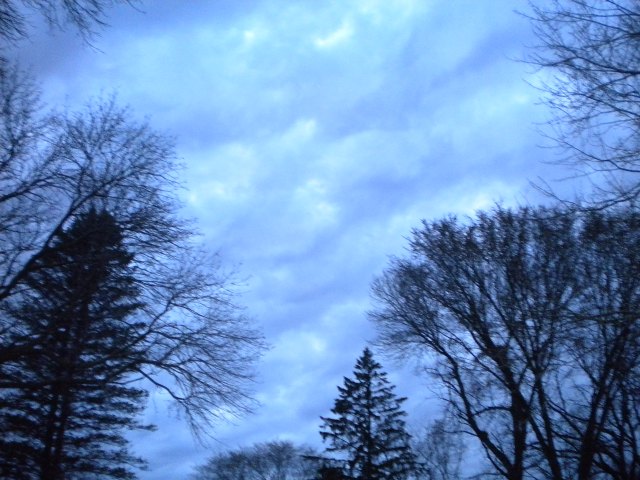 By evening the silver blue sky was laden with heavy, pillowy clouds.