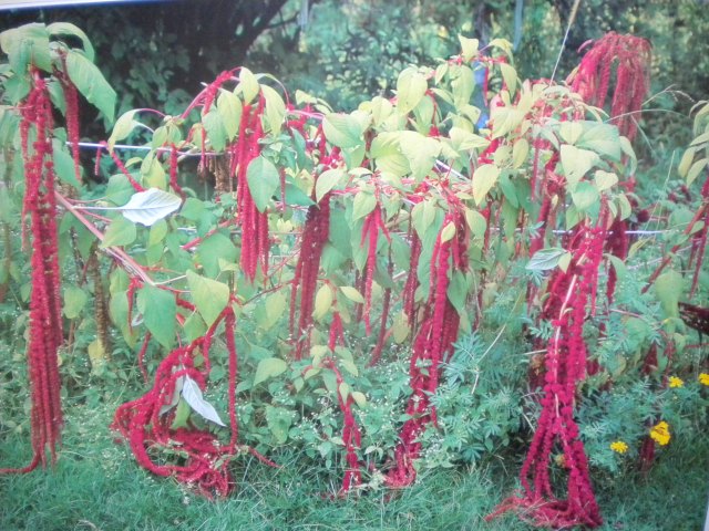 Her “Love lies a bleeding” (polygonum orientale), which Alida called “kiss-me-over-the-garden-gate” was spectacular, six to eight feet high, self-sowing every year. I’ve made a note to look for seeds.