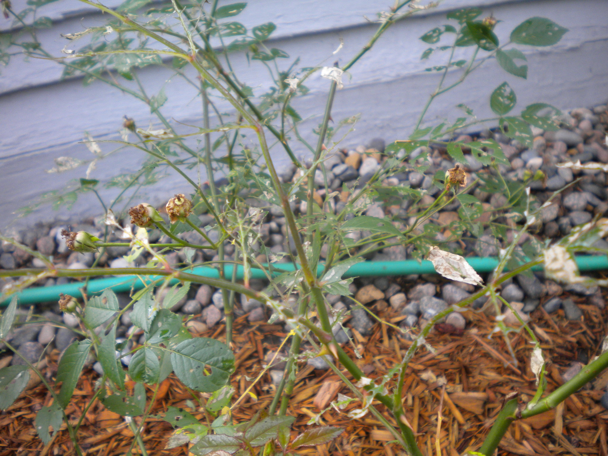 And there is one varmint I am aching to kill right now and that is the bristly rose slug! I was aghast when I went out upon my daily garden patrol a few days ago and discovered the devastation. The horror. Poor Sven had been ravaged almost overnight. And just after I brought him Lena and Ole for companionship (who may also now be compromised by their proximity).