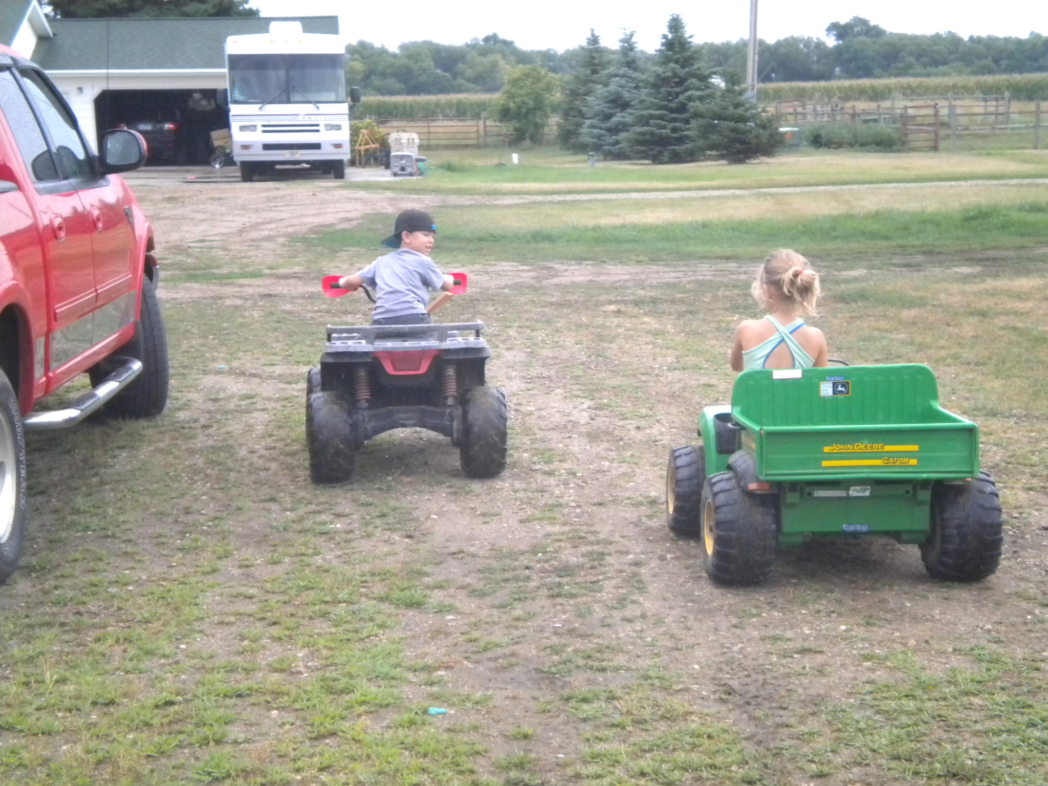 Last week we spent a day at Debbie and Rick’s farm in North Dakota along with a contingent of cousins, their children and grandchildren. Not to forget Aunt Lil – known as “Big Grandma” by some of the gather-ees. I love spending time with my family. It’s always wild and wooly and never dull. But it was the youngest contingent that best captured that day and proved beyond a doubt the truth of the saying – “the apple doesn’t fall far from the tree.”