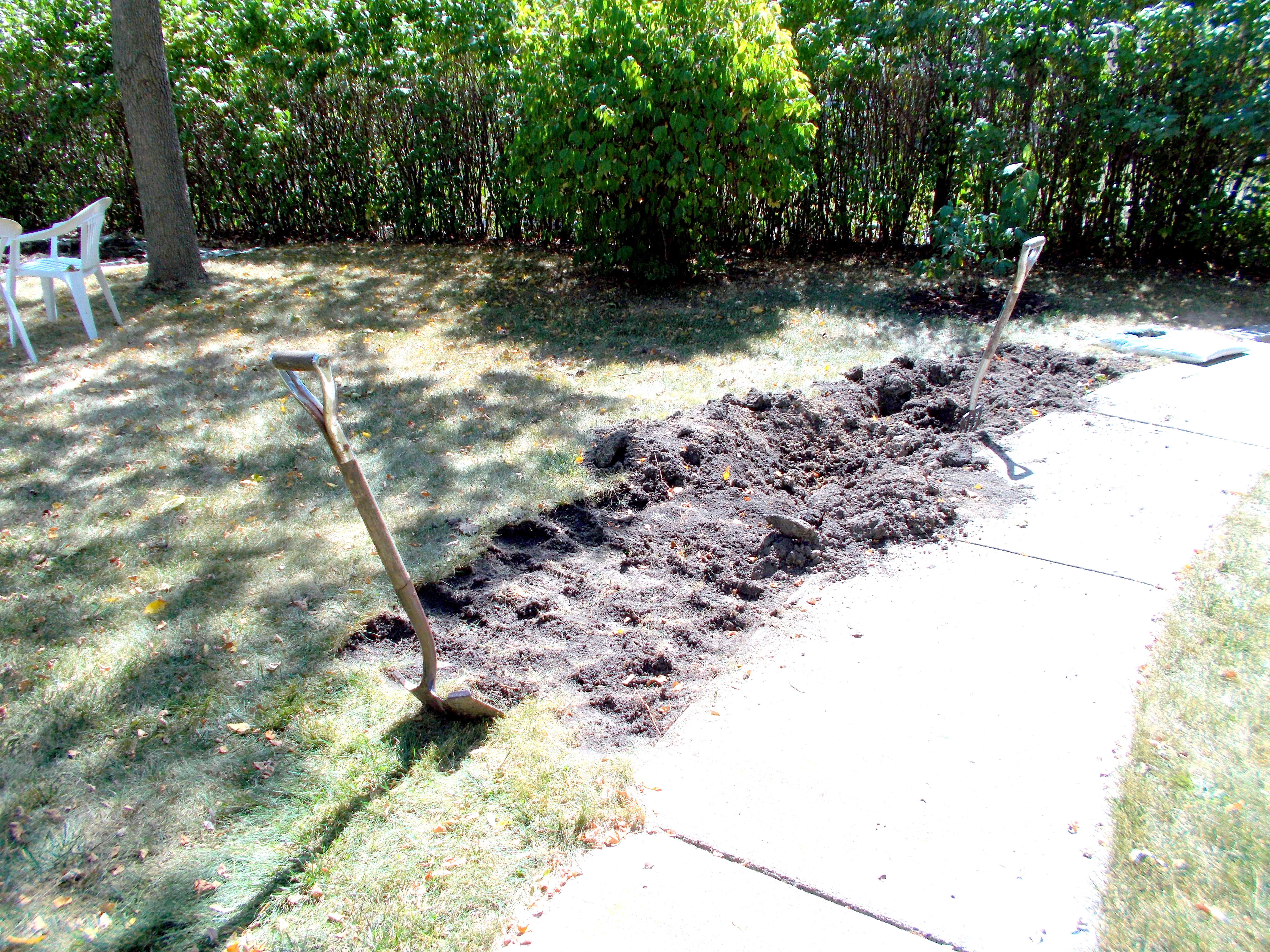 It was not an easy task to dig up planting holes for their peonies. The top eight inches of soil at Mt. Faith was pitifully bereft of nutrients and the next six inches was pure yellow clay. It took some major huffing and hefting and amending to provide a new home for pieces of my past. But I/we did it last week.