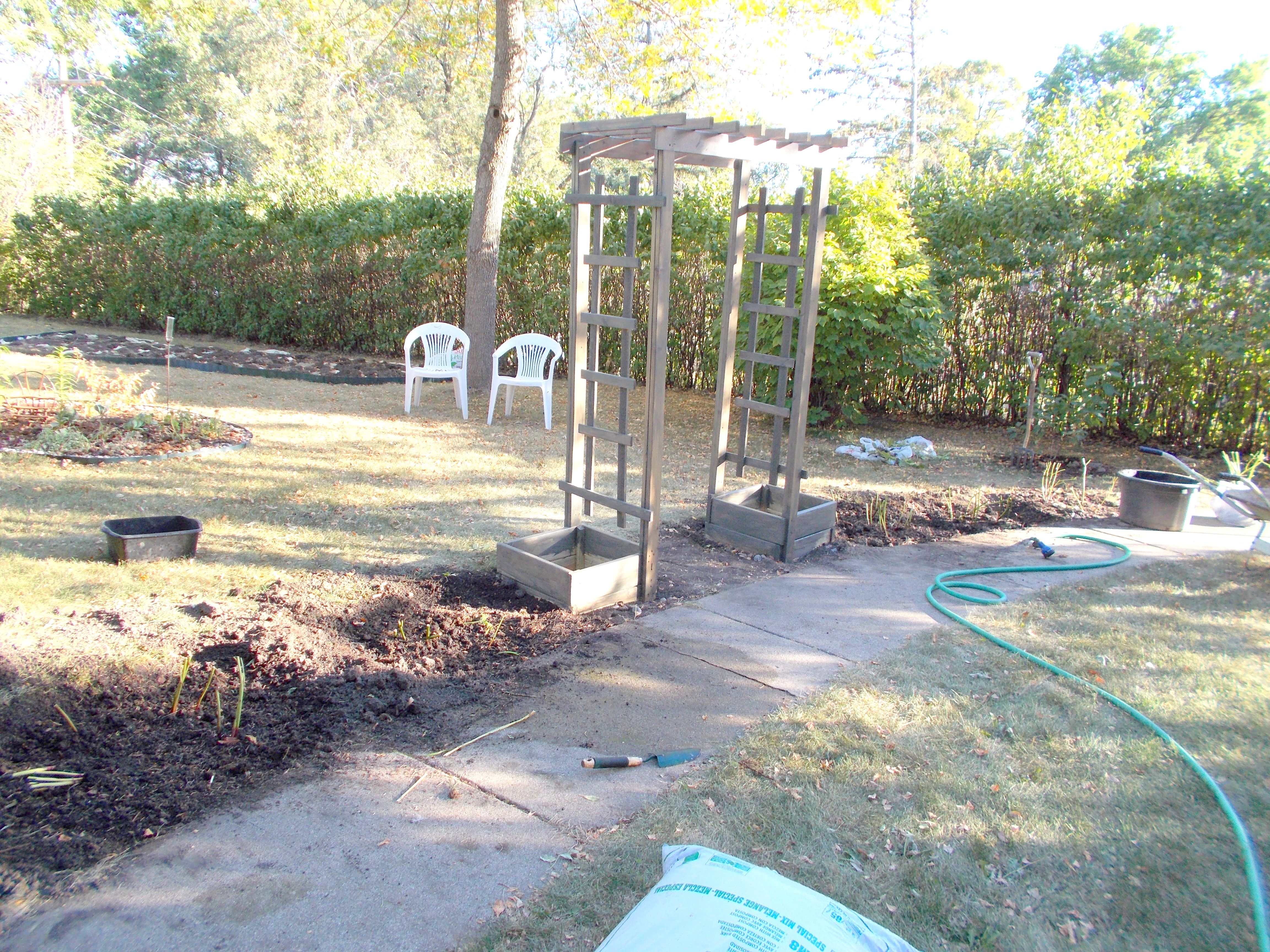 First plantings in the new garden on Mt. Faith amid T.M.’s new arbor, Grandma Pauline on the right, Grandma Marie on the left, Great Grandma Elen across the path.