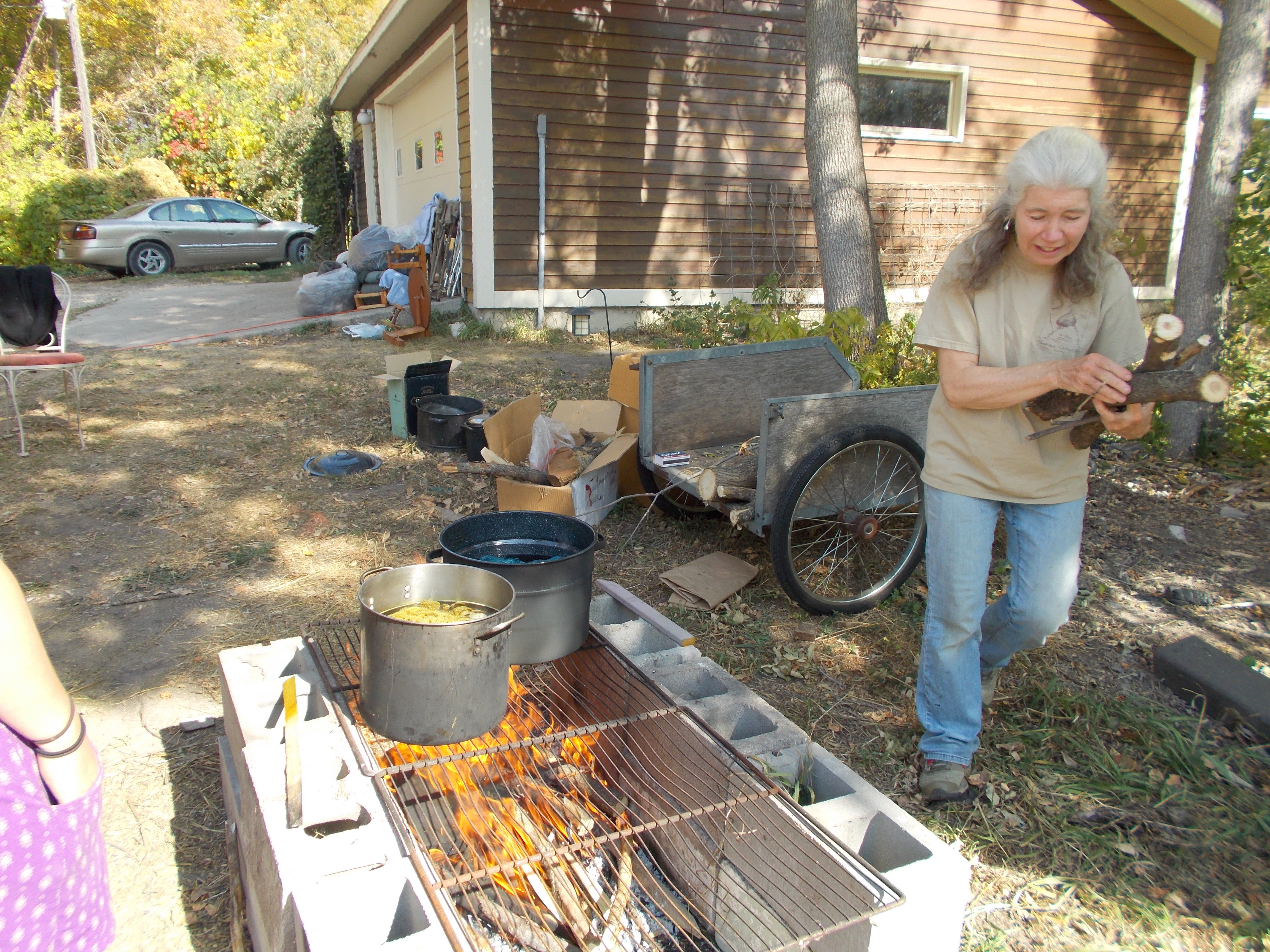 “On fiber days, people make new friends and renew old friendships. They share their skills with newcomers. Don’t you know how to spin? There’s always an open wheel to try out. Problems with the collar on your sweater? One of the expert knitters will have advice or a new pattern. Interested in color but unsure of how to begin dying? The dye pots are always going, with lemon lime Kool-Aid, or onion skins or one of the brilliant commercial dyes.