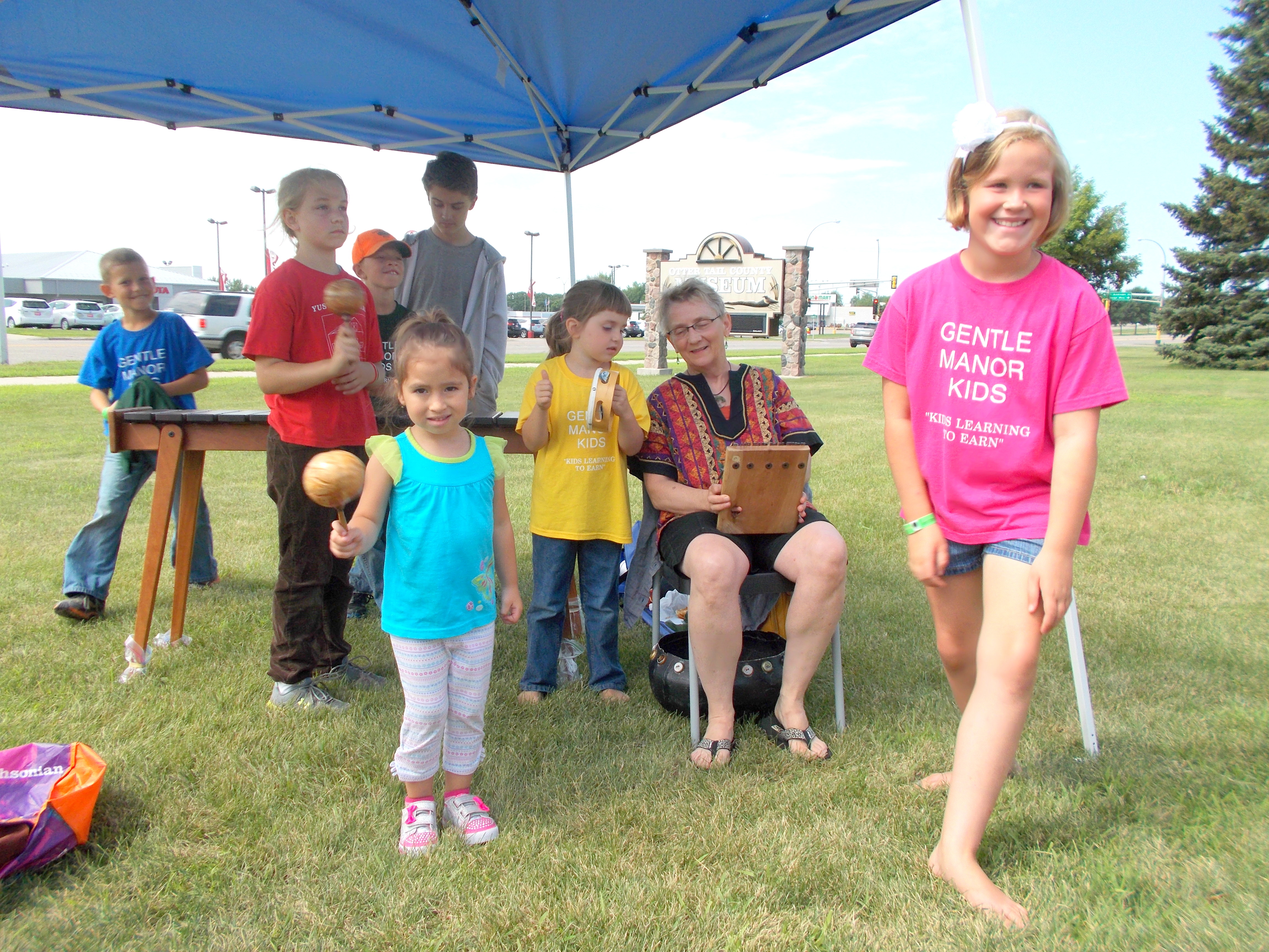 It makes a difference. That is why I was so moved this past Saturday at our Fergus Falls Farmer’s Market and felt compelled to sit and chat with Judith Dumke-Emery, the owner of Gentle Manor Designs and Tea. I was first intrigued by the rash of kids, toddler to teenage, who were alternately gamboling about, helping her at her booth, or popping into and out of Judy’s lap. Or shaking the maracas and beating the tambourine while Jo Mahler played the African marimba in the music booth, or gathering up door prizes from other vendors and eagerly digging each half hour into the fishbowl to pick the winning ticket for the door prize.