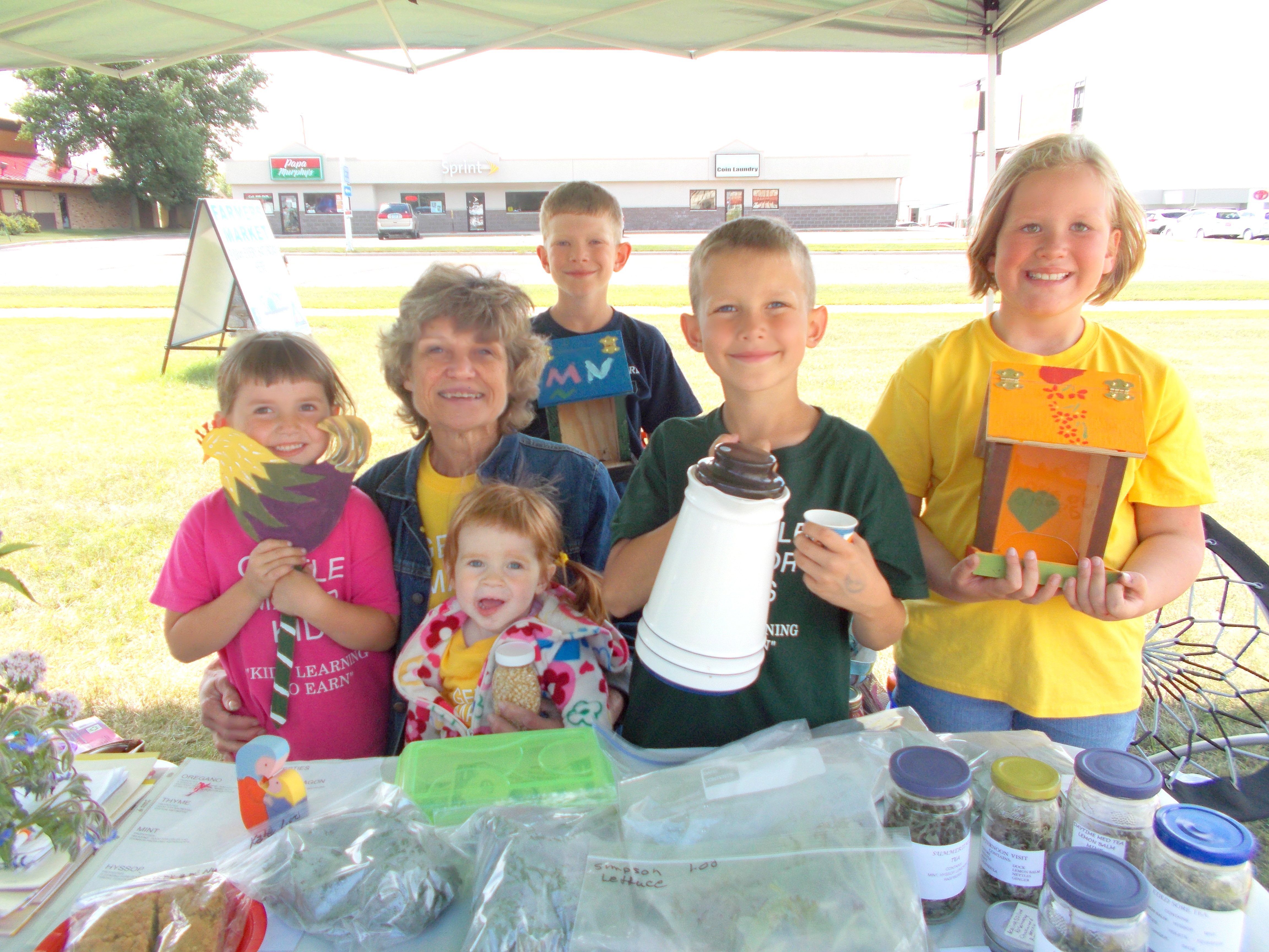 Twice a month, Judy explained, some of the 13 grandchildren (ages two to fifteen) come for a Gentle Manor Kids meeting where they help in the herb and vegetable garden, pick wildflowers, and create art and garden ornaments out of scrap wood. “What do you see?” Judy asks them when she holds up a piece of lumber or forest branch. And their imaginations take over from there. Once a year they hold an Art Show for family and friends and they now help in the market booth each Saturday in Fergus Falls. At the end of the year they will each receive an envelope with their “share.”